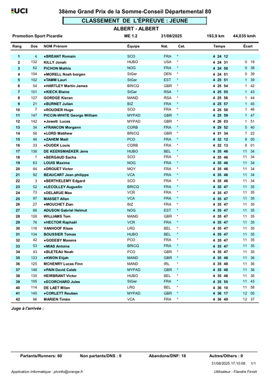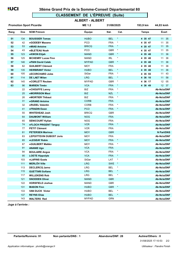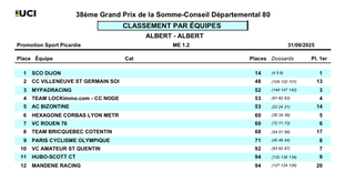 Le classement du 38ème Grand Prix de la Somme Conseil départemental 80