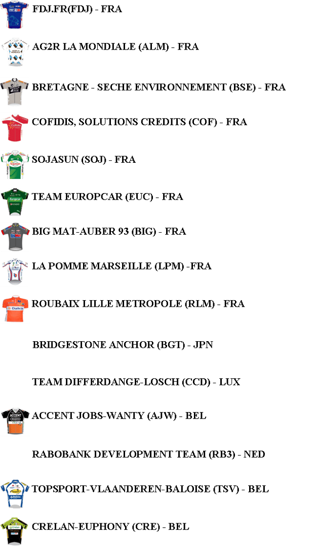 Les équipes sélectionnées